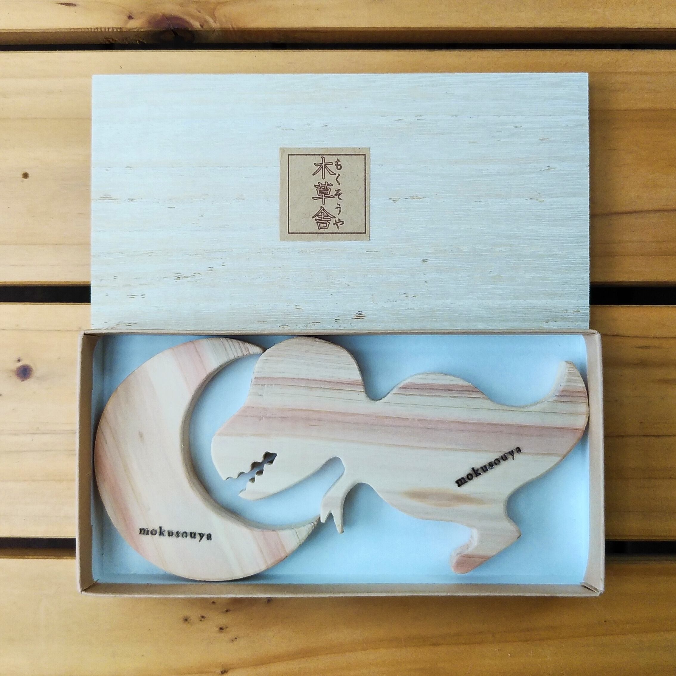 サイズ 恐竜:横88㎜×縦125㎜×厚10㎜ほど 月:横70㎜×縦74㎜×厚10㎜ほど